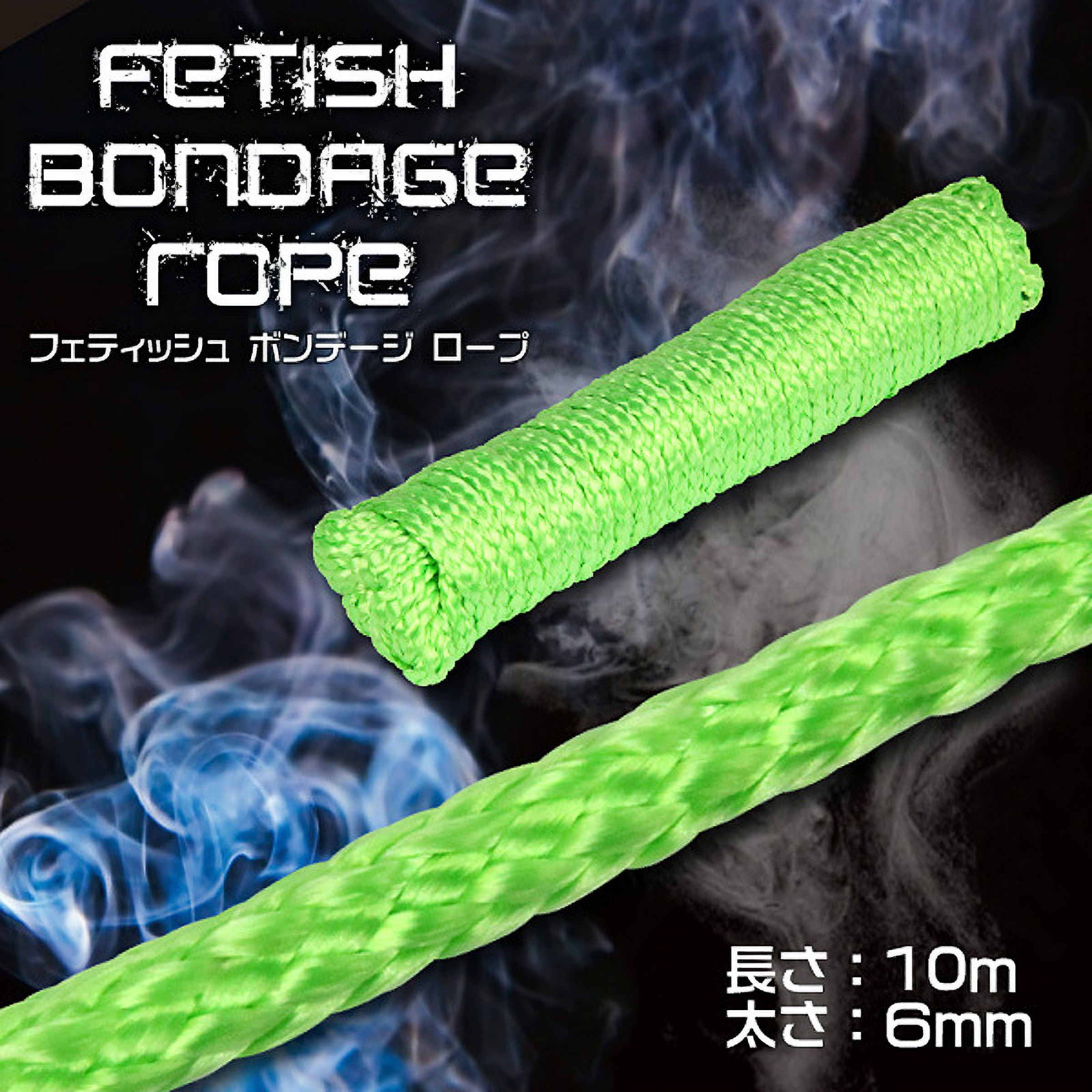 優しい縛り心地で痛みを感じさせない!コスプレ感覚で楽しめるSMロープ。 ●蛍光色のグリーンカラー●全長10m・太さ6mm●肌を傷めず、痕も残りにくいソフト素材●拘束プレイ初心者の方でも扱いやすいのがポイント●シルクのような肌触りがたまらないフェティッシュロープ●長めのロープなので亀甲縛りや達磨縛りもお手の物!本格的な縛りを楽しめるSM拘束グッズです。