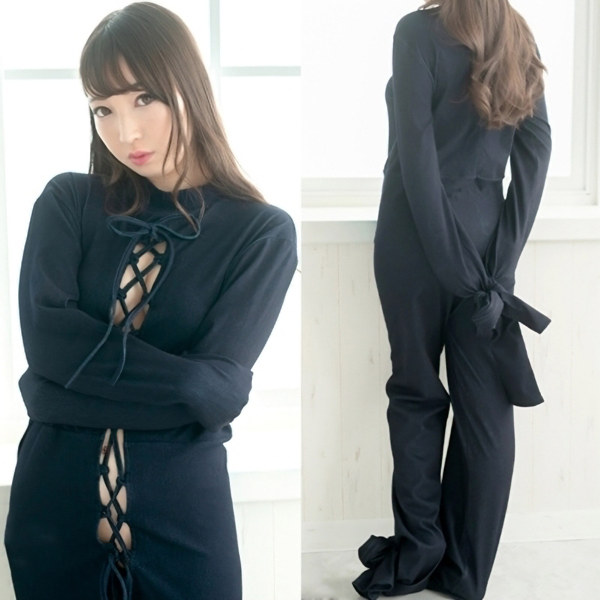 肌触りがとても良い伸縮性デニム生地素材の全身拘束衣です。ストレッチが効いていて長く設えたデザインの袖は両手足を縛ったり、四股をまとめて括ったりと自由な拘束を実現♪チラリと見える胸元、レースアップから除き見える肌がエロい!拘束する喜びと縛られる嬉しさを同時に叶えてくれる珠玉の一着となっています♪お洗濯する際には他のものと一緒に洗わないようご注意ください。染物のため商品の性質上、色落ち、色うつりする可能性がございます。